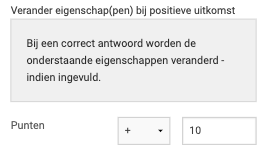 Als de geselecteerde trigger 'Quiz Mode' heeft aangevinkt en er eigenschappen zijn geselecteerd die kunnen worden gewijzigd bij een positief resultaat (bijvoorbeeld het juiste antwoord wordt gegeven), kunnen de wijzigingen aan de geselecteerde eigenschappen hier worden gedefinieerd.